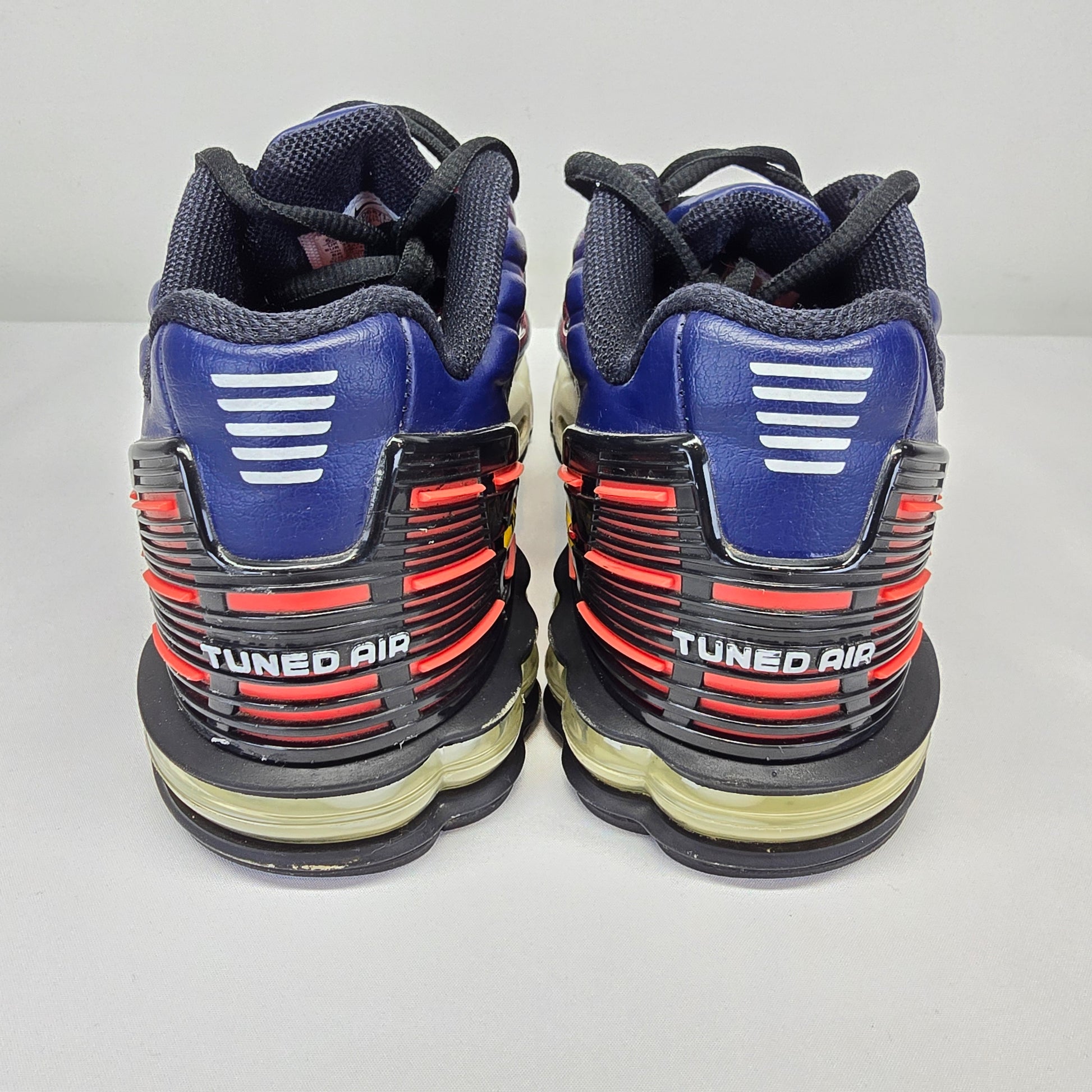 Pre-loved Nike Air Max Plus 3 trainers in Blue Void Magic Ember colourway, carefully checked and in good condition.